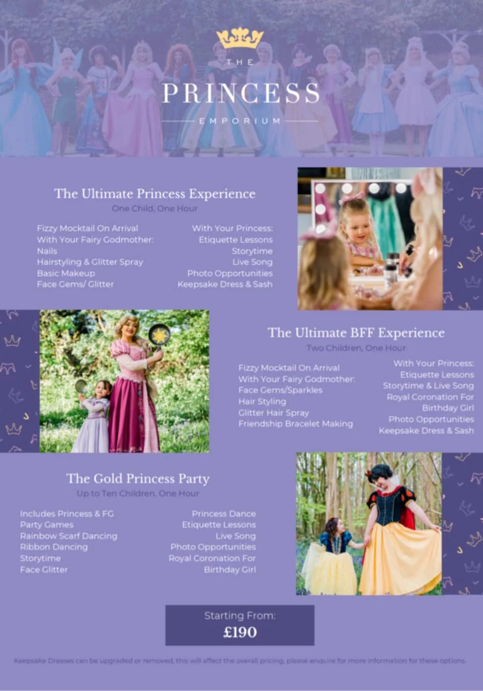 Founded by Eleanor Warner-Larthe, this unique venue offers magical, one-to-one Princess makeover experiences where children can enjoy a full transformation complete with hairstyling, nails, glitter and face gems and a keepsake dress. The experience includes a special visit from their chosen Princess, featuring live singing, storytime, and etiquette lessons, creating unforgettable memories. With options for small group celebrations and workshops, The Princess Emporium combines creative fun with personal touches, making it the ultimate destination for enchanting moments.
